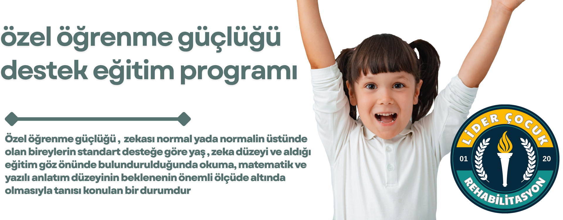 Özel Lider cocuk Özel Eğitim ve Rehabilitasyon Merkezi olarak kurumumuzda özel öğrenme güçlüğü çeken öğrencilerimiz ile aritmetik ve okuma yazma becerisi geliştirme çalışmalarımız yaptığımız planlamalar doğrultusunda devam etmektedir. “Öğrenemeyen çocuk yoktur, her çocuk farklı öğrenir” mottosu ile çıktığımız yolda Özel Lider çocuk Özel Eğitim ve Rehabilitasyon Merkezi olarak eğitim ve öğretim süreçlerinin her anında öğrencilerimiz ile birlikteyiz.